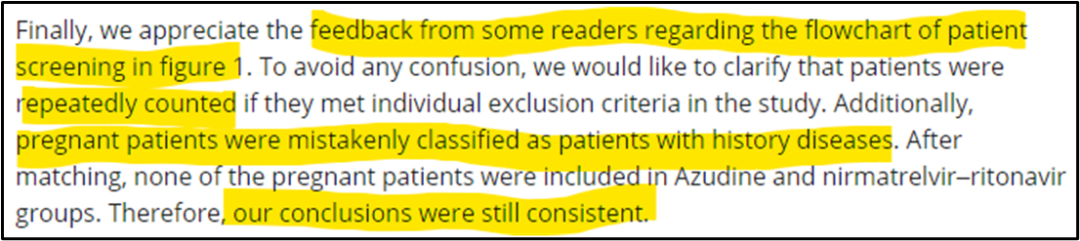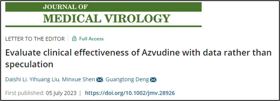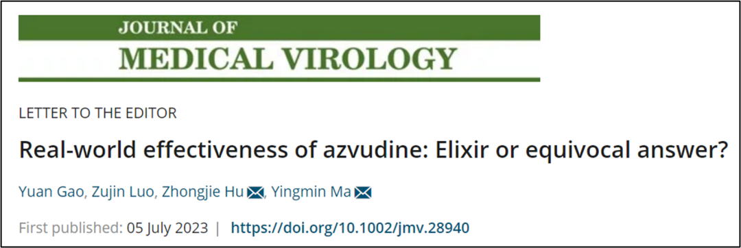 之前分析过湘雅医院几位研究人员不懈余力地用同一批在湘雅住院的新冠患者数据,左比比,右比比,发了三篇论文论证阿兹夫定在新冠住院患者中有效,不仅有效,还比P药更有效。其实对这些阿兹夫定的奇效研究心存质疑的远不止我们,2023年7月5日,北京佑安医院的研究人员在湘雅医院系列论文的期刊之一——J Med Virol上发了一篇通讯,对所谓阿兹夫定在真实世界中有效一说提出怀疑: