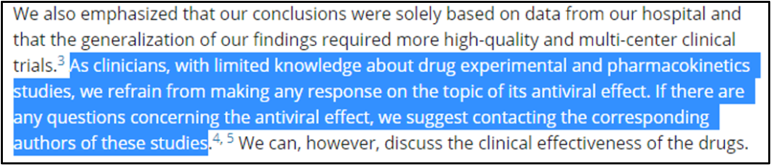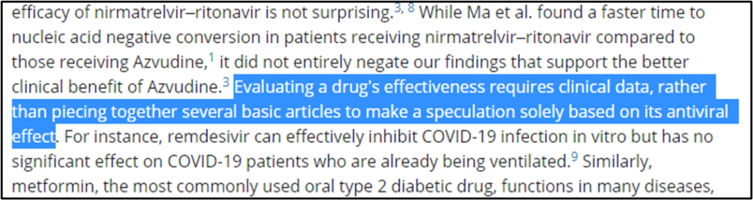 这些质疑都是基于抗病毒药起作用的基本作用原理,采用的也都是阿兹夫定公开的数据,是比较公正的。不过,湘雅医院团队也秉承了以往写论文神速的优秀传统,奋笔疾书,在同一天发表了对佑安医院团队质疑的回复: