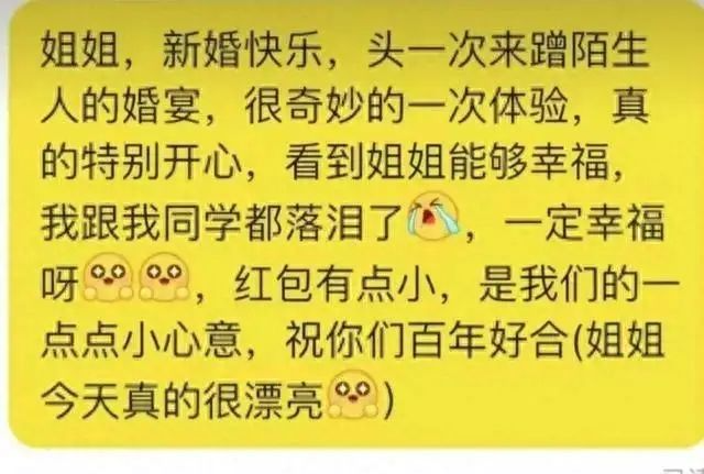 大学生蹭陌生人婚宴随礼100块,网友:太少!本人回应……
