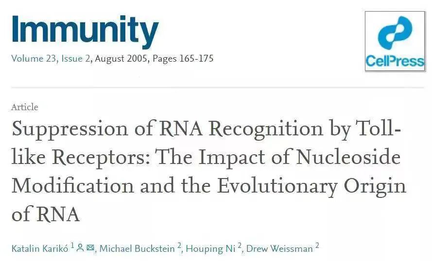 卡里科:这个进展,如你所说,我们首先发送到《自然》杂志,在24小时内,他们就拒稿,认为我此前在这方面没基础(incremental contribution,逐步累积的贡献)。我是大学才开始学英语的,所以还要查“incremental”这个词的意思!不管怎样,我们随后把它送到了《Immunity》,他们接受了它。