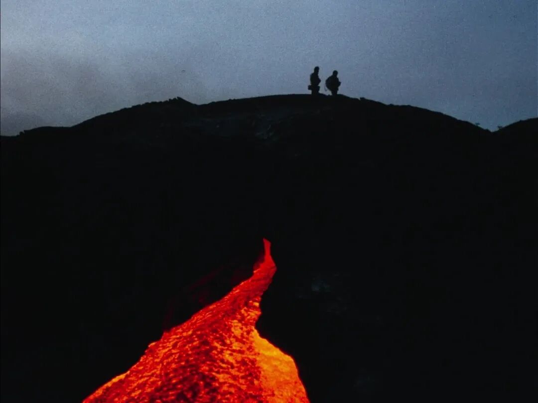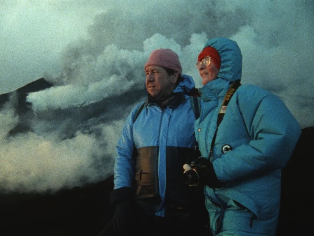 看完电影很久之后,我都会回想起这个瞬间的笑容。那是1984年,冰岛克拉夫拉火山正在喷发,火山学家莫里斯和卡蒂亚夫妻二人在火山口拍摄了这组镜头。由于莫里斯坚信,「火山研究是一门观察科学」,所以在研究火山的二十多年里,二人总是尽可能地离火山更近。这才有了开头的那一幕——咆哮的火山,渺小的人,以及一个笑容。