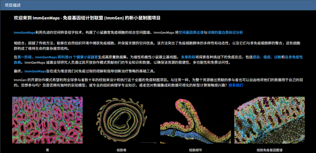 除了以上项目,2025年3月,由Reina实验室牵头的ImmGenMaps【https://www.immgen.org/ImmGenMaps/】项目旨在生成一份涵盖小鼠各器官空间分布的免疫细胞综合图谱。该项目通过结合空间基因表达分析与详细的蛋白质标志物分析,超越传统方法,能够在免疫细胞的天然组织环境中捕捉其分布,并保留关键的空间信息。