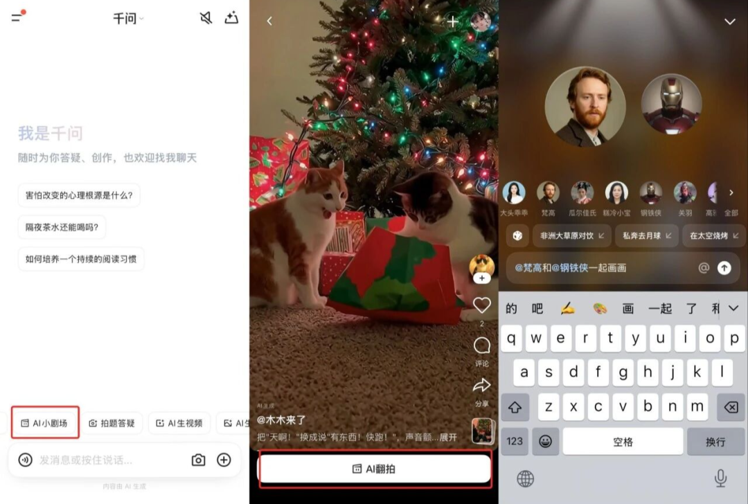 从阅文的网文IP,到腾讯视频的影视作品,再到腾讯游戏的数字资产,这一整条产业链为混元大模型提供了独一无二的多模态训练数据。目前腾讯视频成立的“AI影视表达工作室”或许只是冰山一角,正如孙忠怀最近在海南电影节上的发言所提到的,“未来12个月,将是AI长片涌现的关键窗口期”。优酷则背靠阿里的全栈大模型能力,路径更加偏向商业化落地。尤其是在当下,阿里全力推进千问在C端的各种能力,像是最新的AI小剧场,显然也在进一步发力视频生成能力。这些底层模型能力的持续提升,也为优酷接下来的AI创作带来了更多可能性。