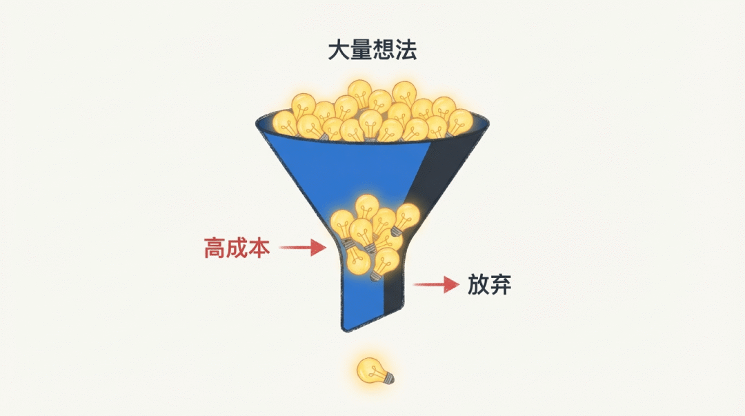 大量的想法,因为验证成本太高,根本没机会试