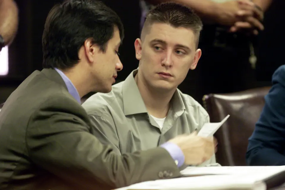 迈克尔・斯科特(审讯供述):“我听到枪响了。我只扣了一次扳机……接着又听到一声枪响。”