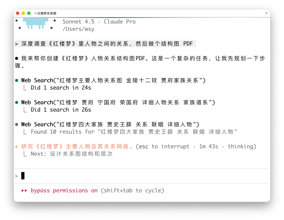 我希望只给它一个模糊的指令(比如「去查查红楼梦人物关系」),它自己去联网搜索、自己去交叉验证、自己梳理逻辑,最后直接甩给我一张专业级的 PDF 矢量图。